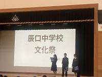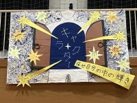 まず初めに3年学年委員が中心となって制作したモニュメントの紹介がありました。今年の文化祭のテーマは「キャラクター~探せ自分の輝き~」です。このモニュメントは無限の可能性が自分の中に広がっていることを表現しており、周りにある星には各クラスの輝いているところが書かれています。