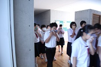 第2回避難訓練 投稿日時 : 2019/07/02 管理者 7月1日(月)、第2回避難訓練がありました。今回は、休み時間に地震が起き、その後火災が発生したとの想定で訓練を実施しました。地震発生の緊急放送が入ると、皆それぞれの場所で「しゃがむ・隠れる・じっとする」という安全行動をとり、火元の確認後ハンカチで口を覆って避難しました。今回は休み時間ということもあり前回より時間がかかりましたが、どこにいても自分の身を守れるよう、日頃から避難経路を確認したり放送をよく聞いたりと安全意識を高く持ってほしいです。