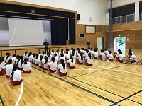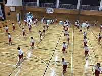 よさこい講習会 投稿日時 : 2019/07/10 管理者 7月9日(火)、講師の先生をお招きしよさこい講習会が行われました。クマ騒動で2回の延期になりましたが、約60名の3年生有志が参加し、注意すべきポイントなど一つ一つ丁寧に教わりました。今回の講習会に参加した3年生がしっかり覚え、クラスの仲間や後輩たちへと伝えていきます。