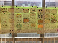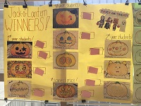 10月31日(水)、今日はハロウィン。本校では、全学年が英語の授業でハロウィンをテーマに学習した後、Jack-o'-Lanternのデザインコンテストに挑戦しました。かわいらしい顔やこわい顔、宝物がいっぱい詰まっていたり、種が見えたり、中にはバナナに化けたカボチャもあります。なかなかの力作ぞろいです。文化祭にも展示します。