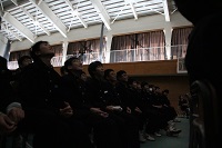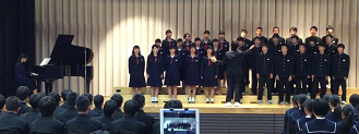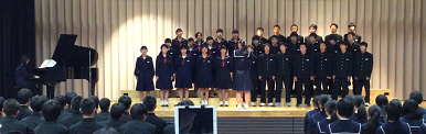 11月22日(木)、根上総合文化会館(タント)にて、石川県音楽教育研究大会能美大会が開催され、研究演奏の部で本校2年生と吹奏楽部のコラボで「旅立ちの時」(2年合唱コンクール課題曲)を演奏しました。気持ちの入った歌声と吹奏楽の音色がぴったりと合い、素晴らしい姿を県内の先生方に披露することができました。打楽器のアンサンブルも聴いていただきましたが、これも素晴らしく、部員の成長を感じました。