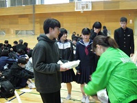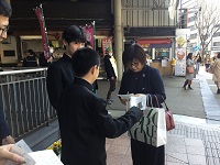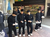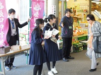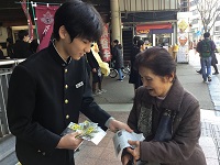 3月2日、今年度も金沢市近江町市場でひまわりの種の配布をしました。3年生3人、2年生4人、1年生3人の計10名が参加し、「閖上ひまわりを育ててみませんか。」と、町ゆく人に大きな声で呼びかけました。