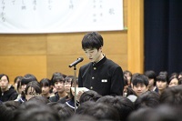 3月9日(土)卒業式。170名の卒業生が胸を張って巣立っていきました。在校生・職員の送り出す思い、卒業生の旅立つ思いのこもった温かな式でした。最後に列席者全員で歌った校歌は大変力強い歌声で、卒業生へのエールと卒業生の頑張っていくぞというかたい決意にあふれたものでした。卒業おめでとうございます。