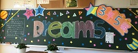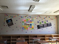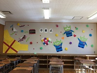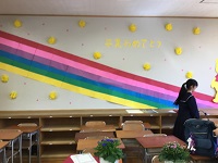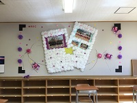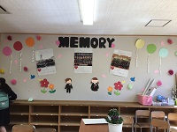 担当の1,2年生がこれまでの感謝とお祝いの気持ちを込めて飾りました。