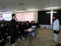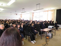 3月14日、2年生の認知症サポート講座がありました。能美市キャラバンメイトの皆さんからクイズや寸劇を交えながら認知症についてわかりやすく教えていただきました。