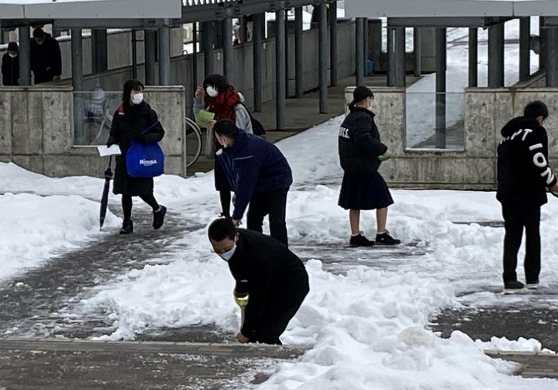 今週に入って久しぶりにまとまった雪が降りました。雪が積もると朝玄関に生徒会除雪ボランティアが活躍してくれます。安心安全の環境づくりに取り組んでくれるボランティアありがとうございます。