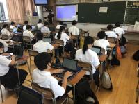 7月3日(月)に能美警察署より職員の方を講師にお招きし、1年生を対象とした「ピュアキッズスクール」が行われました。インターネットやSNSに潜む危険性や正しい利用の仕方について考える機会となりました。