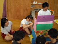 訪問に向けて、幼児が喜ぶ遊びやおもちゃを計画し、段ボールなどで制作して実習に臨みました。持参したおもちゃをきっかけに幼児とすぐに打ち解けることができました。5月の運動会ではグラウンドまで応援に来てくれた園児の皆さん。3年生はようやく幼児とふれ合う時間を持つことができ、楽しい時間を過ごすことができました。