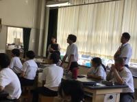 9月7日(木)に國學院大學教授・田村学先生をお迎えして、校内研修会が行われました。4限は各クラスの授業を田村先生が見学され、5限は2年4組が特別に研究授業を行いました。中村先生の理科「植物の体のつくりとはたらき」の授業です。2年4組の皆さんは、自分たちで考えた実験を基に、ICTを活用し、個人思考からグループ学習での意見交流を行い、徐々に自分の考えを深めていきました。全体交流の場では「対照実験」を論点として活発な意見が交わされました。