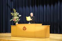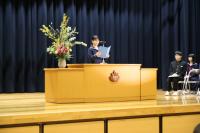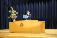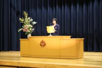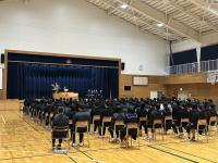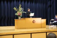 数え年で15歳にあたる中学二年生が、日本で古くから行われてきた「元服」にちなみ、一人の人として「志を立てる」会です。人生の目標と強い意志を作文で表明し、6名の代表生徒が壇上で高らかに読み上げました。