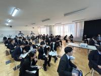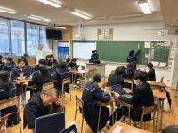 学校運営協議会より畑中茂伸会長にも激励をいただき、生徒たちは道徳の時間に学んだ橋本左内の「啓発緑」での学びを参考に、自分の理想とする大人像について、そしてそのために必要なことは何かを一人一人が考える機会になりました。