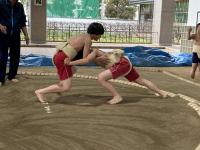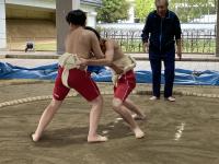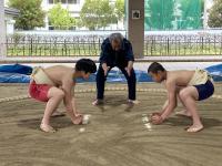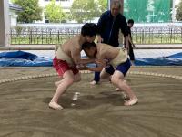 能美市相撲連盟の漆山さんの指導のもと、基本動作だけでなく、土俵上での礼儀作法も学んでいました。臆することなくぶつかり稽古を行い、真剣な面持ちで練習に取り組んでいました。勝負の後も相手を敬う気持ちを大事にする姿がとても爽やかでした。