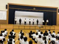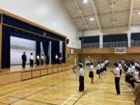 明日の相撲大会に向けて、2年生は学年全員で、1年生は校長室で激励会を行いました。