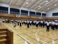 選手からは明日の大会に向けて「4冠を取る」「個人優勝する」「必ず勝つ」など一人ひとりから熱い思いが語られ、校長先生からは勇気をもってぶつかることや相手に礼儀をもって取り組むこと、仲間を応援することを大事にして頑張ってほしいと激励の言葉がありました。