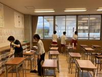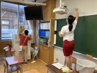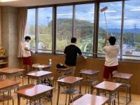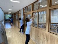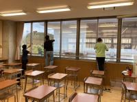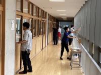 環境整備委員の方を中心に、3年生の生徒・保護者にも参加して頂き、校舎内の窓の清掃を行いました。1学期末に大掃除を行ったものの、この夏休みの間にほこりもたまっており、みなさんのおかげで気持ちよく新学期を迎える準備をすることができました。