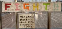 最後に、2年学年委員からブロック大会に向けて3年生へのメッセージが送られました。1、2年生全員のメッセージを張り合わせた掲示物は玄関に掲示されています。