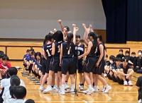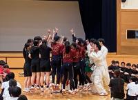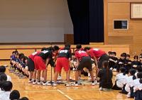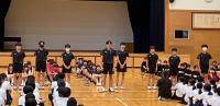 また、2年学年委員で結成された応援団に合わせて、手拍子やかけ声、校歌で選手たちにエールを送りました。