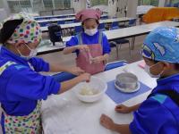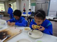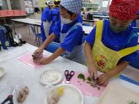 ほとんどが捨てられてしまう、「おから」を使ってピザづくりを体験しながら学習しました。