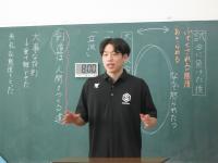 「礼儀はどうして大切なのか」をテーマに、酒井選手にお話ししていただきました。礼儀について学ぶという授業のねらいに沿って、相手の目を見て話すことやアイコンタクト、そして相手を尊重する(リスペクト)気持ちの大切さについて、ご自身の経験を交えながらお話しいただきました。