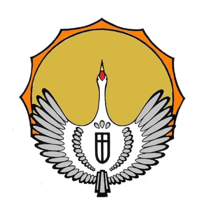 羽の中央部には、田鶴浜町の「田」を、尾は3小学校がひとつになった小学校の「小」をデザインしてあります。17枚の羽は、舟尾・川尻・新屋・垣吉・東山・田鶴浜・上野ヶ丘・三引・高田・杉森・伊久留・吉田・西下・七原・大津・深見・白浜を意味し、地域とともに小学校が大きく羽ばたくことを願い校章をデザインしています。