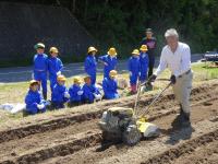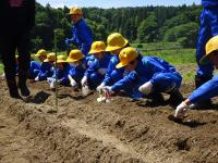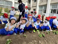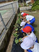5月17日(金)、生活科の学習で、学校の畑に1年生はさつまいも、2年生は、ミニトマト、きゅうりなどの野菜の苗を植えました。