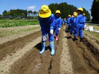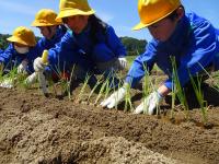 5月22日(水)、3年生が総合的な学習の時間に学習しているのと白ねぎの苗植えを行いました。