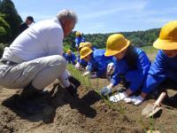 野菜の苗植えは、黒崎さんに指導していただきました。