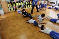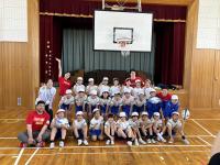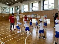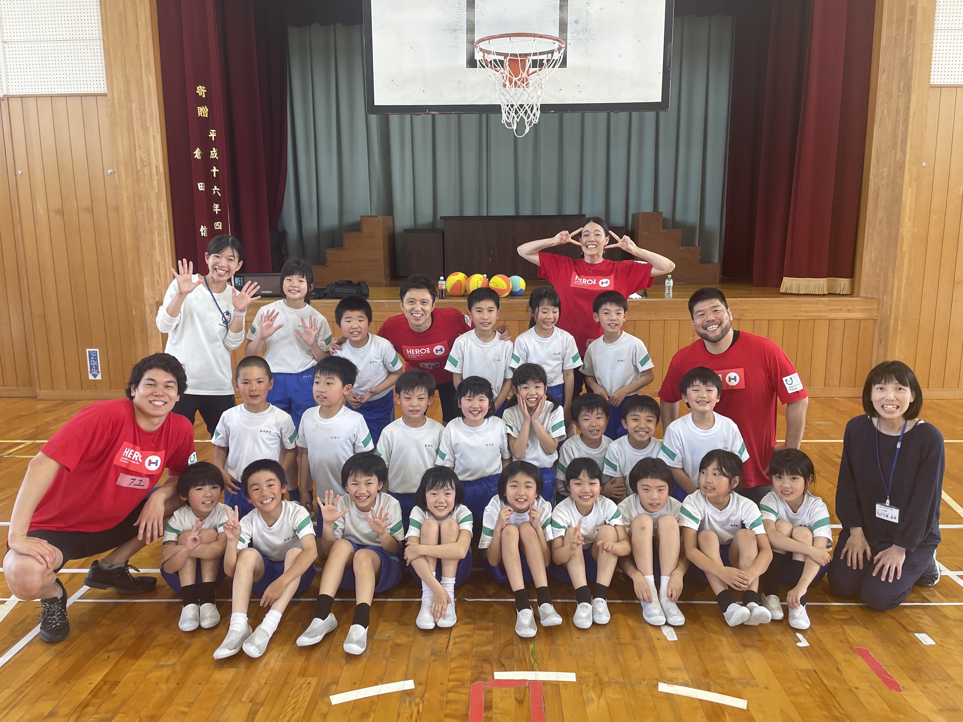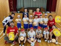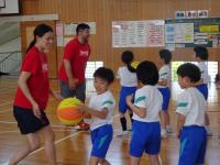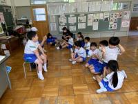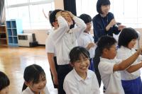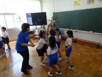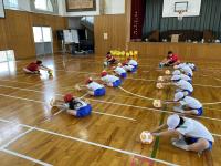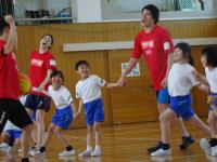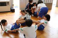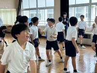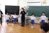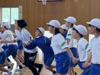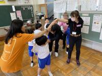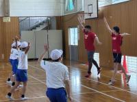 1~6年生全学年が、アスリート4名の方とストレッチ体操、だるまさんが転んだ、鬼ごっこ、チーム対抗の的当てなど体を動かして交流をしました。子供たちの笑顔がたくさん見られました。