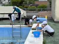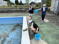 5月28日(火)、5年生がプールサイドや更衣室の掃除をしました。