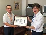 9日学校長が、中川さんに感謝状をお渡ししました。