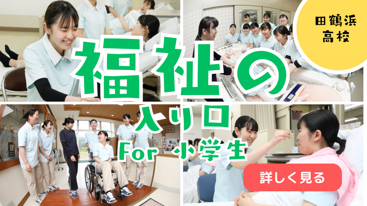 本校は、県内唯一の医療・福祉系学科をもつ専門高校です。どこよりも早く、看護師・介護福祉士の国家試験受験資格を取得できる学校です。昨年度の国家試験も、両科ともに全員受験・全員合格を果たしました。生徒一人一人の進路実現をめざし「チーム田鶴浜」で支援していきたいと思います。