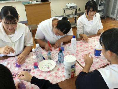 入学してから半年が過ぎ、ボランティア活動やイベントへの参加も少しずつ増えてきました。経験を重ねる中で、生徒には『何を伝えたらいいのか分からない』『眺めているだけになってしまう』という課題が見えてきました。そのため、コミュニケーション技術の授業の一環で、自分自身がクラフト体験をし、楽しさや魅力を知ること、そして出来上がった作品を具体的に褒める体験を行いました。