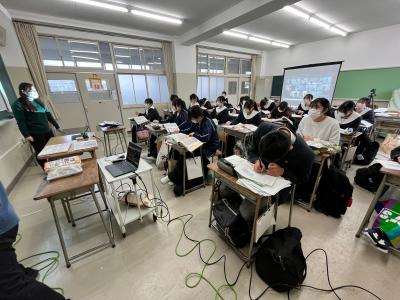 そして昨日、健康福祉科32Hと衛生看護科専攻科2年生がハイブリッド授業を開始しました。生徒たちはお互いの無事を安堵するとともに、国家試験合格に向けて気持ちを切り替え、熱心に授業に向かっていました。