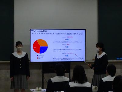 各グループの発表後には、参加生徒・先生からの質問もあり、学びの多い時間になりました。発表を終えた3年生は「大変だったけど、充実した時間だった。」また先生方からの講評を聞き「まだまだ、成長できることがある。これからも、頑張りたい」と話していました。翌日に自らの報告会を控えている1年生は「先輩たちに近づけるように、自分たちも頑張りたい」とモチベーションを上げていました。2年生は「利用者さんをしっかりとアセスメントすること、非言語的コミュニケーションを大切にすることを自分たちも意識して、3年生実習に臨みたい」と話していました。