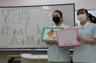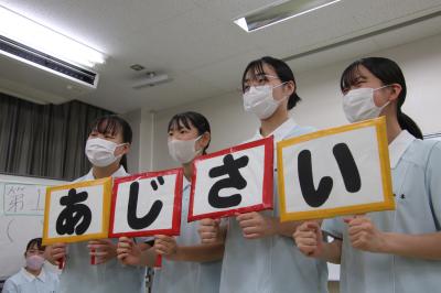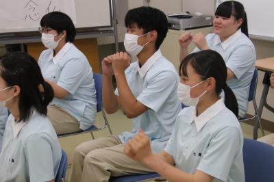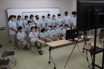 6月27日に健康福祉科2年生が「養護老人ホームあっとほーむ若葉」の利用者の皆様とオンラインでの交流会を行いました。生徒は「体操」「脳トレ」「クイズ」などをグループに分かれ企画し、利用者の皆様に楽しんでいただけるよう準備してきました。画面越しのオンラインでの交流という形でしたが、利用者の皆様が喜ばれる様子に生徒たちも笑顔でいっぱいでした。