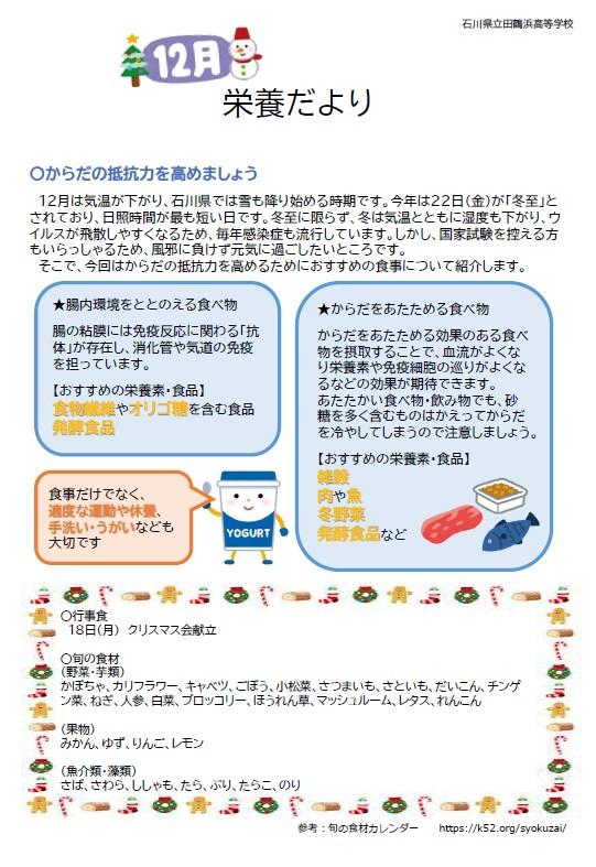 一覧へ 12月寮献立表・栄養だより 投稿日時: 2023/11/28 taturh 12月の献立表と栄養だよりです。ご覧ください。 R05_12月献立表.pdf R05_12月栄養だより.pdf(下記のものと同様です)