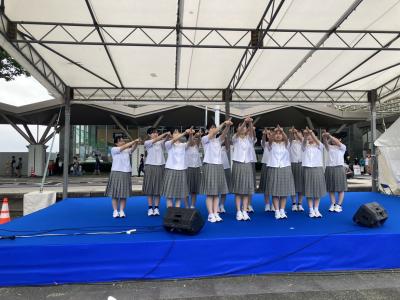 7月5日(土)「のと里山空港 開港22周年記念イベント」のステージに出演させていただきました。1曲目はOfficial髭男dismの「旅は道連れ」、2曲目はケツメイシの「友よ~この先もずっと・・・」の手話歌を披露しました。部員たちは、「1年生を入れた新たな隊形での初めての舞台だったので、不安でいっぱいだったのですが、見てくださった方からの拍手がすごく温かく感じました。」や「楽しそうに手話を真似してくださる方もいらっしゃって私自身も嬉しい気持ちになりました。」と、あらためて人の温かさに支えられていることを実感していました。貴重な機会をいただき、ありがとうございました。