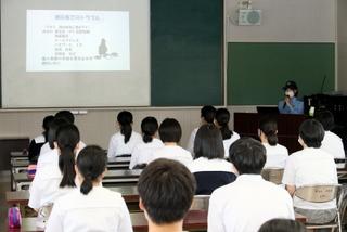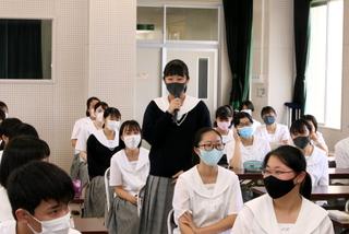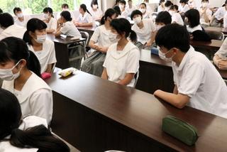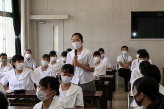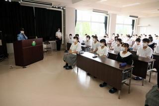 夏を迎えるこの時期に、七尾警察署から担当の方にお越しいただき、『防犯教室』を開催しました。例年は、全学年を対象に行いますが、今年は感染症対策ということで、1年生のみを対象にして実施されました。スマートフォンやSNSを利用する際の注意事項などについて、再現ドラマのビデオを観て、お話をいただきました。生徒たちも、決して他人事ではないという気持ちで、しっかりと聴いていました。聴講後には、生徒同士で意見交換し、感想や感謝の言葉も述べて、有意義な時間になりました。