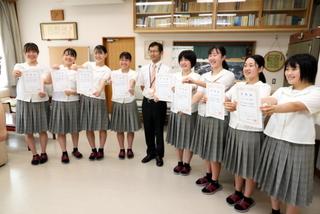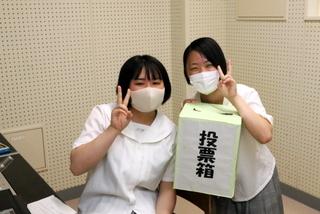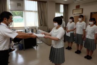 『生徒会役員選挙』が行われました。投票日前の選挙運動は、毎朝の玄関前などでの呼びかけやポスター、昼休みの放送で行われました。投票日当日には、感染予防に配慮するために、例年のような体育館での全校集会形式での演説会ではなく、事前に録画したビデオを各クラスで上映する形で行いました。昨年度後期の生徒会執行部が中心になりビデオを制作しました。よく工夫されていて、楽しい雰囲気の中にもしっかりとした主張が織り込まれたものになっていました。進行は、生徒によって放送で行われ、投票もスマートフォンによるネット投票で実施されました。放課後には、集計が行われ、結果発表も放送されました。翌日の昼休みに、校長室で認証式が行われ、校長先生から認証状が手渡されました。惜しくも当選できなかった候補者も生徒会議長などの役職で執行部として活動していきます。最後に執行部全員で校長先生と記念写真を撮り、前期の生徒会活動に向けての決意を新たにしました。