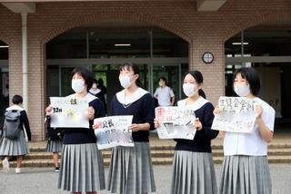 『生徒会役員選挙』が行われました。投票日前の選挙運動は、毎朝の玄関前などでの呼びかけやポスター、昼休みの放送で行われました。投票日当日には、感染予防に配慮するために、例年のような体育館での全校集会形式での演説会ではなく、事前に録画したビデオを各クラスで上映する形で行いました。昨年度後期の生徒会執行部が中心になりビデオを制作しました。よく工夫されていて、楽しい雰囲気の中にもしっかりとした主張が織り込まれたものになっていました。進行は、生徒によって放送で行われ、投票もスマートフォンによるネット投票で実施されました。放課後には、集計が行われ、結果発表も放送されました。翌日の昼休みに、校長室で認証式が行われ、校長先生から認証状が手渡されました。惜しくも当選できなかった候補者も生徒会議長などの役職で執行部として活動していきます。最後に執行部全員で校長先生と記念写真を撮り、前期の生徒会活動に向けての決意を新たにしました。