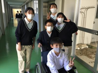 車いす体験では、車いすの使い方や押し方などについて学んだ後、校内を散策しました。