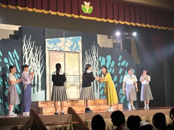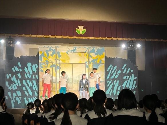 10月28日(月)に劇団わらび座さんを本校にお招きし、ミュージカル「青春(アオハル)するべ!」を観劇しました。生徒が毎年様々な文化に触れる機会となっている文化教室ですが、元日の能登半島地震の影響から、今年度は例年と異なり本校の体育館が舞台となりました。普段の体育館が本格的な舞台のセットに変化している様子に生徒からは驚きの声が聞こえてきました。自分たちが学校生活を送っている場所で観劇できたことが、生徒にとって特別な思い出の1つになったのではないかと感じます。