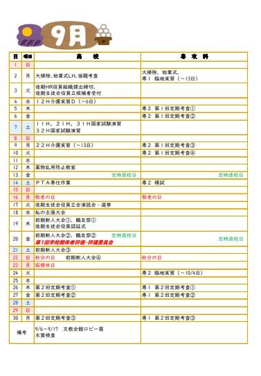 令和6年度行事予定(8月・9月)を更新しました。
