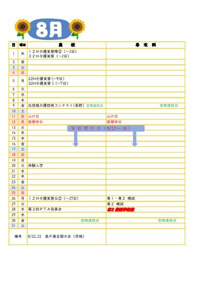 令和6年度行事予定(8月・9月)を更新しました。