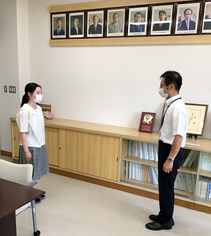 部長の水田杏さん(衛生看護科2年生)が校長先生に出場への意気込みを報告しました。