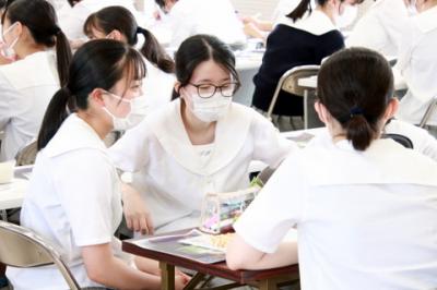7月11日、「専門高校等における産学連携人材育成事業」の取り組みとして、前回に引き続き、田鶴浜の伝統工芸である建具の魅力について教えていただきました。本日は「岡野建具工芸」岡野 繁様をお招きし、建具の歴史や地域創生に向けた取り組みに関する様々なお話を拝聴しました。また、組子づくり体験にも挑戦し、木の匂いや手触りを感じながらコースターを完成させました。実際に屏風も拝見し、緻密で繊細な作品に魅了されました。さらに、今回の講話・体験を通しての学びを、これからの看護・福祉の場面でどのように活かしていくかをグループで話し合いました。今後も田鶴浜についてより深く知り、企画した案を実践に繋げるべく、検討を重ねていきます。