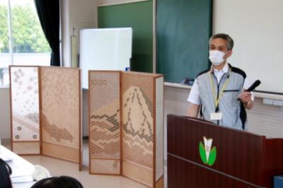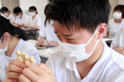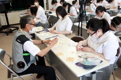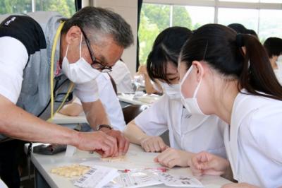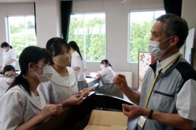 7月11日、「専門高校等における産学連携人材育成事業」の取り組みとして、前回に引き続き、田鶴浜の伝統工芸である建具の魅力について教えていただきました。本日は「岡野建具工芸」岡野 繁様をお招きし、建具の歴史や地域創生に向けた取り組みに関する様々なお話を拝聴しました。また、組子づくり体験にも挑戦し、木の匂いや手触りを感じながらコースターを完成させました。実際に屏風も拝見し、緻密で繊細な作品に魅了されました。さらに、今回の講話・体験を通しての学びを、これからの看護・福祉の場面でどのように活かしていくかをグループで話し合いました。今後も田鶴浜についてより深く知り、企画した案を実践に繋げるべく、検討を重ねていきます。