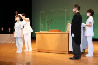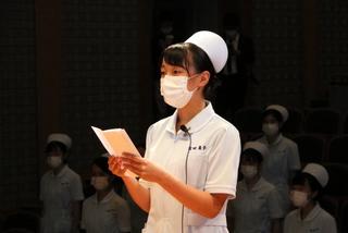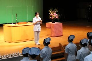 戴帽生代表の生徒からは、『みんなで励まし合い切磋琢磨し、今の自分たちにできる最高の看護を患者様に提供したい。』などの『誓いの言葉』が力強く述べられました。