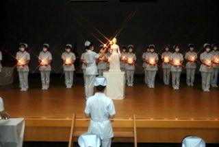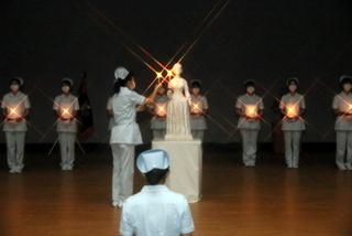 続いて、戴帽生一人ひとりが、ナイチンゲール像から聖火をいただきました。