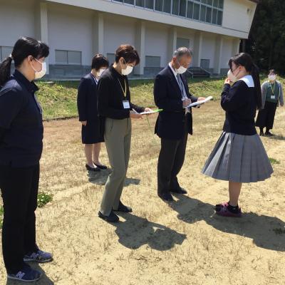 5月5日から大きな地震が連日続いているため、地震を想定した避難訓練を行いました。地震発生後には、机の下で身を守り、その後運動場へと避難しました。1年生は入学して最初の避難訓練となるため、避難経路を確認することが出来ました。今は、生徒として避難誘導される側ですが、将来は、看護師・介護福祉士として、患者様・利用者様の避難を誘導する立場になります。そのことを意識した訓練にもなったのではないかと思います。